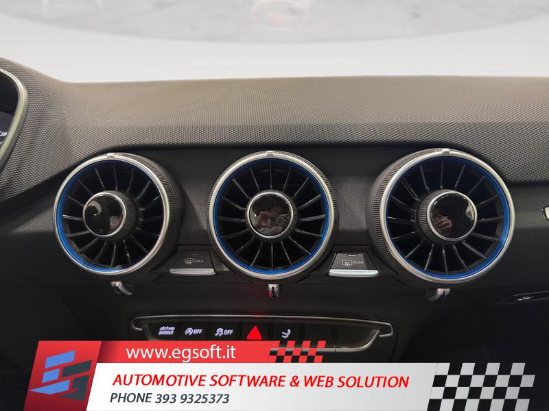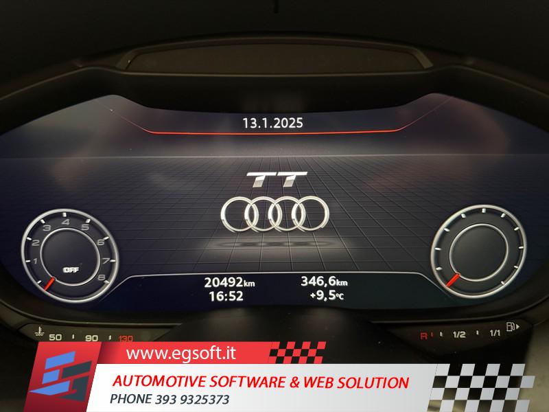 VETRI PRIVACY (VETRI OSCURATI)SISTEMA DI NAVIGAZIONE E INFOTAINMENT AUDI CONNECTSISTEMA DI FISSAGGIO ISOFIX PER I SEGGIOLINI DEI BAMBINI PERSISTEMA DI CONTROLLO PER IL PARCHEGGIO ZONA POSTERIORESISTEMA AUDIO AUDIRISCALDAMENTO DEI SEDILI ANTERIORIPACCHETTO VANO PORTAOGGETTI E VANO BAGAGLIPACCHETTO LUCIIMPIANTO DI REGOLAZIONE DELLA VELOCITÀELEMENTI INTERNI COLORATI VERNICE SATINATA BLU TURBOCOMBINAZIONE ALCANTARA/PELLE CON STAMPIGLIATURA SCLIMATIZZAZIONE COMFORTCERCHI DESIGN A 5 RAZZE A Y 8 5J XBULLONI DELLE RUOTE ANTIFURTOBRACCIOLO CENTRALE ANTERIORE COMFORTAUDI SMARTPHONE INTERFACEATTREZZI DI BORDO E CRICXENON PLUSVOLANTE SPORTIVO MULTIFUNZIONALE SAGOMATO IN PELLE A 3 RAZZE APPIATTITOVETRI ATERMICIVERSIONE NON FUMATORIVANI PORTAOGGETTITESSUTO EFFETTOTERMINALI DI SCARICOTAPPETINI ANTERIORISPOILER POSTERIORESPECCHIETTI RETROVISIVI ESTERNI CON INDICATORI DI DIREZIONE A LED INTEGRATISISTEMA START & STOPSISTEMA DI CONTROLLO PRESSIONE PNEUMATICISISTEMA DI ANCORAGGIO ISOFIX PER I SEGGIOLINI DEI BAMBINI SUISISTEMA APPOGGIATESTA DI SICUREZZASERVOSTERZO ELETTROMECCANICOSENZA DENOMINAZIONE MODELLO/ALIMENTAZIONESENSORE LUCI/PIOGGIA E FUNZIONE COMING HOME/LEAVING HOMESEDILI POSTERIORI (2)SEDILI ANTERIORI SPORTIVISCHIENALE DEL SEDILE POSTERIORE RIBALTABILES TRONICRICEZIONE RADIO DIGITALERECUPERO DI ENERGIARADIO MMIQUATTROPROTEZIONE LATERALE ANTIURTOPARAURTIPARABREZZA TERMICOMATERIALE DI PRONTO SOCCORSO E TRIANGOLO D'EMERGENZALUCI INTERNELOOK ALLUMINIO AMPLIATO NELL'ABITACOLOLISTELLI SOTTOPORTALIMITATORE DI VELOCITÀKIT RIPARAZIONE PNEUMATICIINTERFACCIA BLUETOOTHINSERTI IN VERNICE GRIGIO METALLIZZATOIMPIANTO FRENANTEGRUPPI OTTICI POSTERIORI A LEDFRENO DI STAZIONAMENTO ELETTROMECCANICOFILTRO ANTIPARTICOLATO PER MOTORI BENZINAELEMENTI COLORATI NEGLI INTERNI IN VERNICE TATTILE NERADISPOSITIVO ELETTRONICO ANTIAVVIAMENTO (IMMOBILIZER)DISPOSITIVO DI CONTROLLO DELLA TRAZIONE (ASR)DISPOSITIVO DI ASSISTENZA ALLA FRENATA PER COLLISIONE SECONDARIADISPOSITIVO ANTISLITTAMENTO IN PARTENZA (EDS)COPERCHIO DEL SERBATOIO IN LOOK ALLUMINIOCONTROLLO ELETTRONICO DELLA STABILITÀ (ESC)CLIMATIZZATORE MANUALECIELO DELL'ABITACOLO IN TESSUTO NEROCHIUSURA CENTRALIZZATACERCHI IN LEGA D'ALLUMINIO FUCINATO 8J X 17 CON DESIGNAUDI VIRTUAL COCKPITAUDI SINGLE FRAMEAUDI MUSIC INTERFACEAUDI DRIVE SELECTATTREZZI DI BORDOASSETTO CON TARATURA SPORTIVAAPPOGGIABRACCIA CENTRALE ANTERIOREALLOGGIAMENTO DEGLI SPECCHIETTI RETROVISIVI ESTERNI IN COLORE CARROZZERIAAIRBAG LATERALI ANTERIORI E SISTEMA DI AIRBAG PER LA TESTAAIRBAG LATERALI ANTERIORIAIRBAG FULLSIZERETROVISORE INTERNO ANABBAGLIANTE
