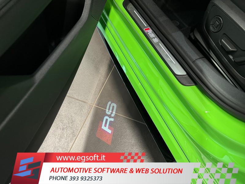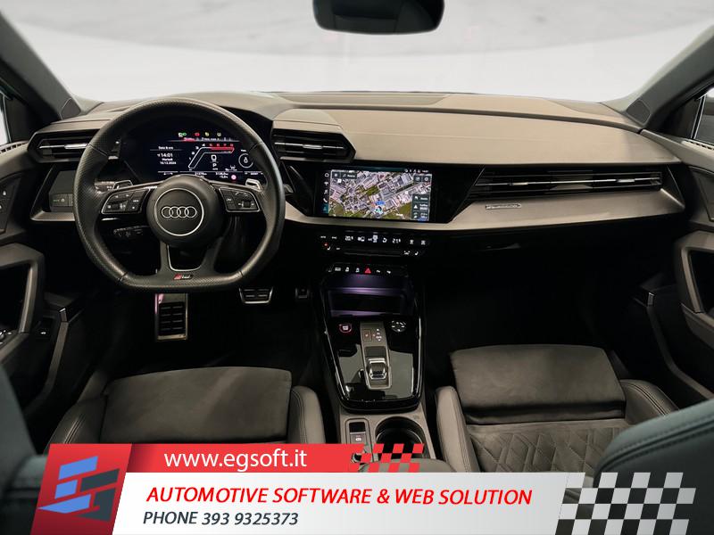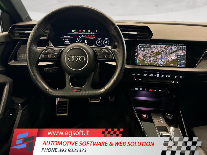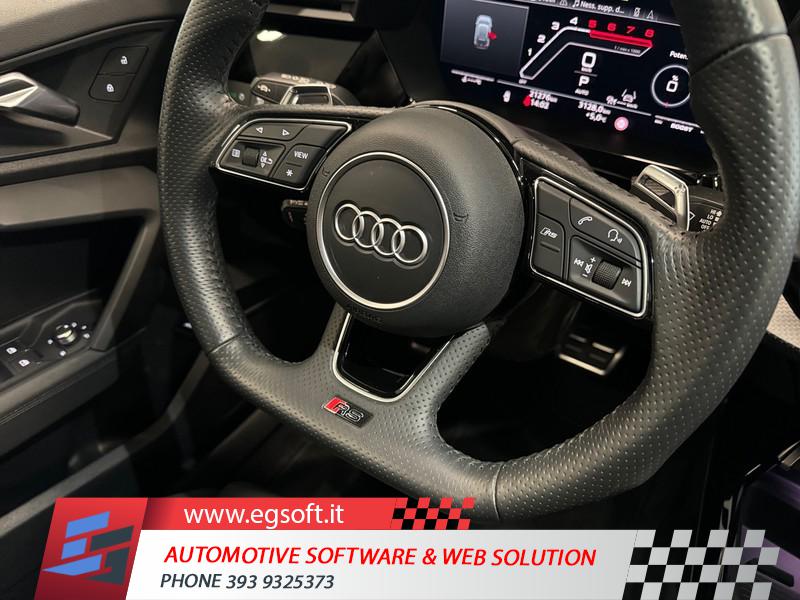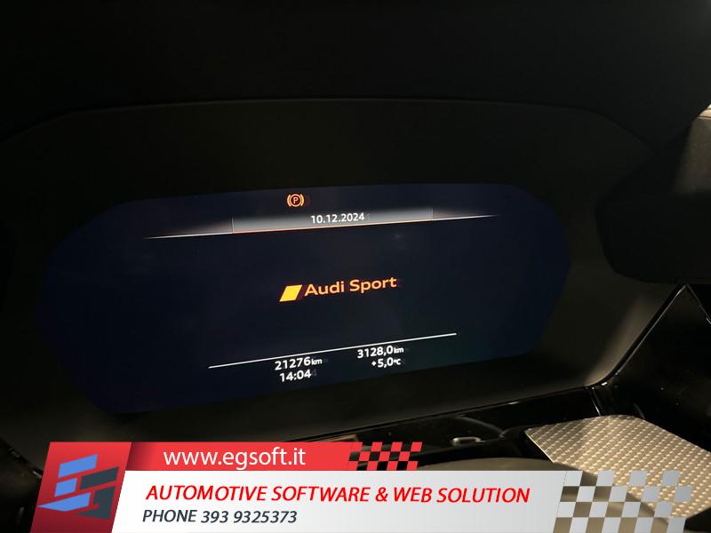 VOLANTE MULTIFUNZIONE PLUS IN PELLE A 3 RAZZE CON BILANCERITERMINALI DI SCARICO CROMATI A SEZIONE OVALE UNO A SINISTRASTERZO PROGRESSIVOSPOILER S LINE POSTERIORE IN COLORE CARROZZERIASPECCHIETTO INTERNO SCHERMABILE AUTOMATICAMENTESENZA CORNICESPECCHIETTI RETROVISORI ESTERNI REGOLABILI RISCALDABILI RIPIEGABILI ELETTRICAMENTE E CON FUNZIONESPECCHIETTI RETROVISORI ESTERNI IN NEROSOSPENSIONI SPORTIVE RSSISTEMA DI NAVIGAZIONE MMI PLUS CON MMI TOUCHSENZA DENOMINAZIONE TECNOLOGIASEDILI ANTERIORI SPORTIVI RS CON POGGIATESTA INTEGRATI E FIANCHETTI DEISEDILI ANTERIORI REGOLABILI ELETTRICAMENTESCHIENALE DEL SEDILE POSTERIORE RIBALTABILERIVESTIMENTO IN MONO.PUR 550/MICROFIBRA DINAMICA CON PUNZONATURA RS E DESIGNRICEZIONE RADIO DIGITALE (DAB)PROIETTORI A LED CON GRUPPI OTTICI POSTERIORI A LEDPREDISPOSIZIONE AD AUDI SMARTPHONE INTERFACE ATTIVABILE TRAMITE FUNCTIONS-ON-DEMANDPOGGIABRACCIA CENTRALE ANTERIORE IN SIMILPELLEPARAURTI CON PRESE D'ARIA LATERALI DAL LOOK RS IN NEROPARABREZZA IN VETRO INSONORIZZANTEPACCHETTO PORTAOGGETTI E VANO BAGAGLIPACCHETTO LUCI D'AMBIENTE CON PROFILI A LEDMODANATURE FINESTRINI IN NERO LUCIDOMMI RADIO PLUSLANE DEPARTURE WARNINGINTERFACCIA BLUETOOTHINSERTO ALLA PLANCIA IN CARBONIO ATLAS PROFILI PLANCIA E CRUSCOTTOI-SIZE PER I SEDILI POSTERIORI LATERALIGRIGLIA SINGLEFRAME CON CORNICE NERA E MOTIVO A NIDO D'APEFRENO DI STAZIONAMENTO ELETTROMECCANICO CON ASSISTENZA ALLA PARTENZAFRENI ANTERIORI E POSTERIORI A DISCO CON PINZE VERNICIATE INELEMENTI IN LOOK ALLUMINIO PER INTERNICLIMATIZZATORE AUTOMATICO BIZONACHIAVE CON TELECOMANDO CON SAFELOCK E AVVIAMENTO KEYLESS-GOCHIAMATA DI EMERGENZA E ASSISTENZA AUDI CONNECT CON AUDI CONNECTCERCHI IN LEGA D'ALLUMINIO A 10 RAZZE A Y GRIGIOBULLONI ANTIFURTOBATTITACCHI ALLE PORTIERE CON INSERTO IN ALLUMINIO CON LOGO RSAUDI VIRTUAL COCKPIT PLUS CON DESIGN RS DA 123"KIT EMERGENZAANTIFURTOAIRBAG CENTRALE (RIEMPIE LO SPAZIO TRA I SEDILI ANTERIORI PERAIRBAG PER LA TESTA (PROTEGGONO I PASSEGGERI ANTERIORI E DEIASSISTENTE AGLI OSTACOLI CON ASSISTENTE ALLA SVOLTA (TURN ASSIST)SENSORE LUCI/PIOGGIASISTEMA DI AUSILIO AL PARCHEGGIO PLUS CON ASSISTENTE AL PARCHEGGIOAUDI DRIVE SELECT PER ASSETTO DI SERIEIMPIANTO AUDIO CON 10 ALTOPARLANTISUPPORTO LOMBARECIELO VETTURA IN TESSUTO NERO3 POGGIATESTA POSTERIORI REGOLABILI MANUALMENTEAIRBAG ANTERIORI LATERALI INTEGRATI NELLO SCHIENALEAUDI PRE SENSE FRONTINDICATORE PERDITA PRESSIONE PNEUMATICIKIT PRIMO SOCCORSO E TRIANGOLO DI EMERGENZA CON DUE GIUBBOTTINISICURA PER BAMBINI AD AZIONAMENTO ELETTRICOSTART&STOP SYSTEM PER IL RECUPERO DI ENERGIAAIRBAG DISINSERIBILEKIT RIPARAZIONE PNEUMATICI CON COMPRESSORE 12VVELOCITÀ MASSIMA 80 KM/HREGOLATORE DI VELOCITÀ - CRUISE CONTROL
