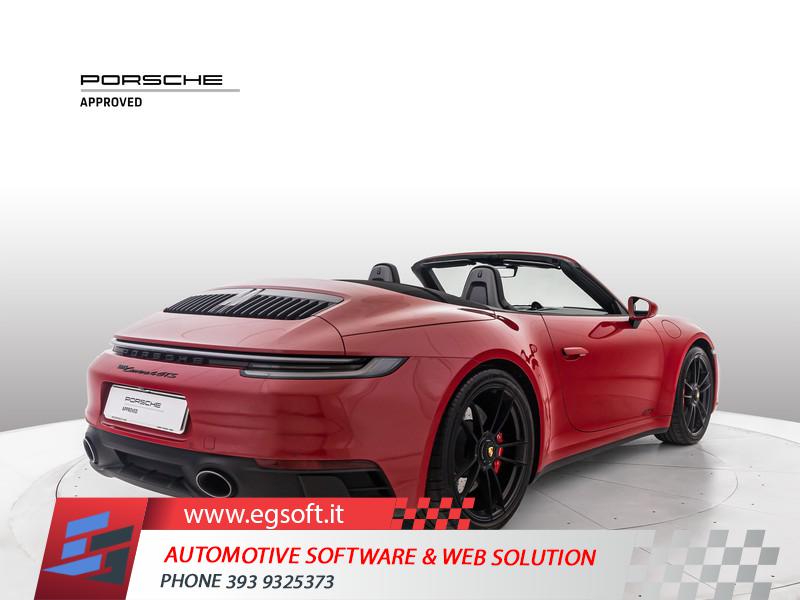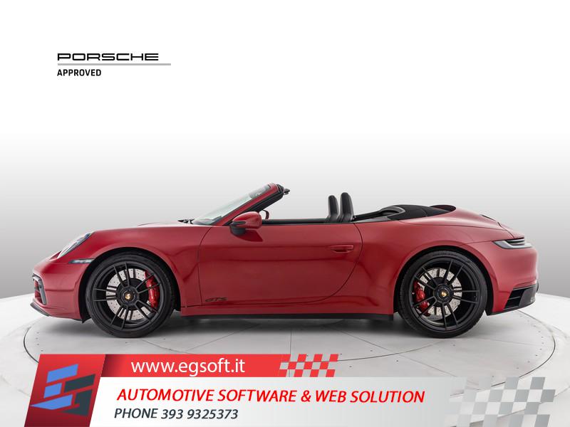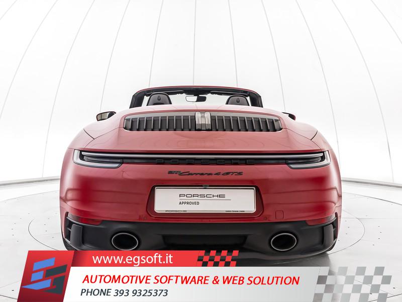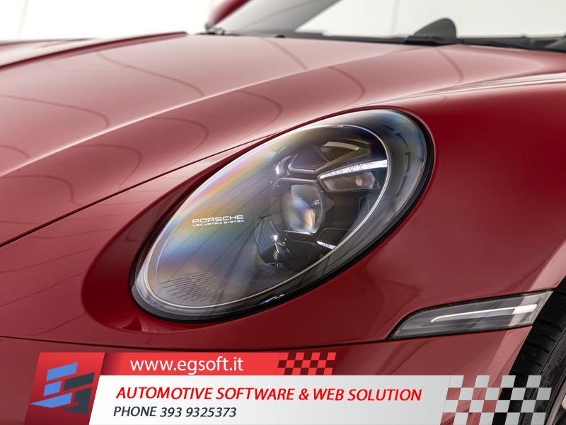 VOLANTE SPORTIVO MULTIFUNZIONE GT IN RACE-TEX NEROVETRI TERMICAMENTE ISOLATI DI COLORE VERDEVARIOCAM PLUS APERTURA E ALZATA VALVOLE VARIABILIVANI PORTAOGGETTI NELLE PORTETAPPETINISPOILER POSTERIORE AUTOMATICOSPECCHI DI CORTESIA ILLUMINATI INTEGRATI NELLE ALETTE PARASOLE LATO GUIDATORESOUND PACKAGE PLUS 8 ALTOPARLANTI POTENZA TOTALE 150 WATT CONSISTEMA EUROPEO DI CHIAMATA AUTOMATICA ECALLSISTEMA DI GESTIONE VETTURA FERMA CON FUNZIONE HOLDSERVOSTERZO ELETTROMECCANICO CON RAPPORTO DI TRASMISSIONE VARIABILE E GENERATORE DISEDILI SPORTIVI PLUS ELETTRICI A 4 VIE CON IMBOTTITURA LATERALEROLL-BAR DI PROTEZIONE AD APERTURA AUTOMATICARIFLETTORE POSTERIORE A FASCIA CON LUCI A LED TRASPARENTIRIFINITURE LATERALI DELLE MINIGONNE IN COLORE NERORAFFREDDAMENTO A LIQUIDO CON GESTIONE TERMICARADIO DIGITALEQUADRO STRUMENTI CON CONTAGIRI ANALOGICO CENTRALE E DUE DISPLAY TFTPUNTI DI SUPPORTO SUL SEDILE DEL PASSEGGERO PER IL SISTEMAPROGRAMMA PORSCHE OWNERPORSCHE VEHICLE TRACKING SYSTEM (PVTS)PORSCHE TRACTION MANAGEMENT (PTM) TRAZIONE INTEGRALE CON FRIZIONE MULTIDISCO APORSCHE TORQUE VECTORING PLUS (PTV PLUS)PORSCHE STABILITY MANAGEMENT (PSM) CON ABS E FUNZIONALITÀ FRENI OTTIMIZZATAPORSCHE SIDE IMPACT PROTECTION (POSIP)PORSCHE CONNECTPORSCHE COMMUNICATION MANAGEMENT (PCM) CON MODULO DI NAVIGAZIONE ONLINE PREDISPOSIZIONEPINZE FRENO ANTERIORI FISSE MONOBLOCCO IN ALLUMINIO A 6 PISTONCINIPASM SPORT SUSPENSION (-10 MM)PARTE INFERIORE SPECCHIETTI ESTERNI NEL COLORE ESTERNOPARKASSIST (ANTERIORE E POSTERIORE) CON TELECAMERAPACCHETTO SPORTDESIGNPACCHETTO SPORT CHRONOMOTORE BOXER A 6 CILINDRI CON SOVRALIMENTAZIONE BITURBO CILINDRATA: 3MONOBLOCCO E TESTATA CILINDRI IN ALLUMINIOMODANATURA CRUSCOTTO MODANATURA CONSOLLE CENTRALE E MODANATURE PORTE IN NEROLUNOTTO TERMICOLUCI SUPPLEMENTARI ANTERIORI CON LUCI DI POSIZIONE INDICATORI DI DIREZIONELUCI DI LETTURA DI ORIENTAMENTO BLOCCHETTO D'AVVIAMENTO VANO BAGAGLI VANOLUBRIFICAZIONE A CARTER SECCO INTEGRATO E CONTROLLO ELETTRONICO POMPA DELL'OLIOLOGO PORSCHE IN NERO INTEGRATO NELLA FASCIA LUMINOSA POSTERIORELISTELLI SOTTOPORTA CON DENOMINAZIONE MODELLO IN ALLUMINIO SPAZZOLATO NEROKEYLESS DRIVEINTERNO CON ELEMENTI IN RACE-TEX NERO. FASCIA CENTRALE SEDILI ANTERIORIINIEZIONE DIRETTA DI CARBURANTE (DFI)INDICATORE DELLA MARCIA INSERITA NEL CONTAGIRIIMPIANTO TERGICRISTALLO A 2 VELOCITÀ CON SPAZZOLE AERODINAMICHE E UGELLIIMPIANTO DI SCARICO SPORTIVO CON SILENZIATORE MODIFICATO E DUE TERMINALIIMMOBILIZZATORE DEL MOTORE CON CHIUSURA CENTRALIZZATA A DISTANZA E SISTEMAIMMOBILIZZATORE CON CHIUSURA CENTRALIZZATA E SBLOCCO PORTELLONE POSTERIOREGRIGLIA DEL COFANO POSTERIORE CON LAMELLE VERTICALI IN COLORE NEROFUNZIONE START-STOP AUTOMATICAFRENO ELETTROMECCANICOFRENO DI STAZIONAMENTOFINESTRINI LATERALI POSTERIORI AZIONABILI ELETTRICAMENTEFILTRO PER POLVERI SOTTILI CON FILTRO A CARBONI ATTIVIFARI PRINCIPALI A LED SCURI CON PORSCHE DYNAMIC LIGHT SYSTEMDUE PORTABICCHIERI SINGOLI (UNO NELLA CONSOLE CENTRALE E UNO LATODUE CATALIZZATORI A 3 VIE E DIAGNOSI ON-BOARD PER ILDENOMINAZIONE MODELLO POSTERIORE IN COLORE NERO SATINATOCOSTRUZIONE INTELLIGENTE LEGGERA IN ALLUMINIO E ACCIAIO COMPOSITOCONSOLE CENTRALE ASCENDENTE CON VANO PORTAOGGETTICOLLETTORE DI ASPIRAZIONE AD ESPANSIONECLIMATIZZATORE AUTOMATICO A 2 ZONE CON IMPOSTAZIONI DI TEMPERATURA SEPARATECIELO DELLA CAPOTE IN TESSUTO NEROCERCHI IN LEGA FORGIATI DA 20 / 21 POLLICI TURBOCAPOTE IN TESSUTO NERO COMPLETAMENTE AUTOMATICA AD AZIONAMENTO ELETTRICO CONCAMBIO PDK A 8 RAPPORTI CON VOLANO A DOPPIA MASSAAVVISO E ASSISTENTE ALLA FRENATAATTIVAZIONE AUTOMATICA DEI FARIASSE ANTERIORE CON SCHEMA MCPHERSON E BARRE ANTIROLLIOALZACRISTALLI ELETTRICI CON FUNZIONAMENTO ONE-TOUCH E GUARNIZIONI PROTEZIONI PORTAALETTA FRANGIVENTOAIRBAG FULL-SIZE PER GUIDATORE E PASSEGGERO4 VALVOLE PER CILINDRO2 TURBO COMPRESSORI2 INTERCOOLER2 PORTE USB NEL VANO PORTAOGGETTI DELLA CONSOLLE CENTRALE PRESA2 FILTRI ANTIPARTICOLATO (GPF)2 + 2 CON MOTORE POSTERIORESISTEMA DI MONITORAGGIO PRESSIONE PNEUMATICIREGOLATORE DI VELOCITÀ - CRUISE CONTROL