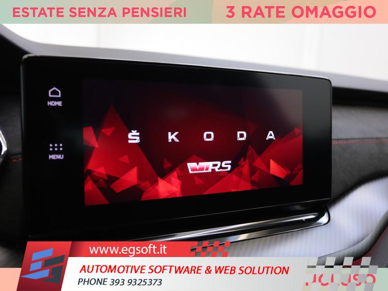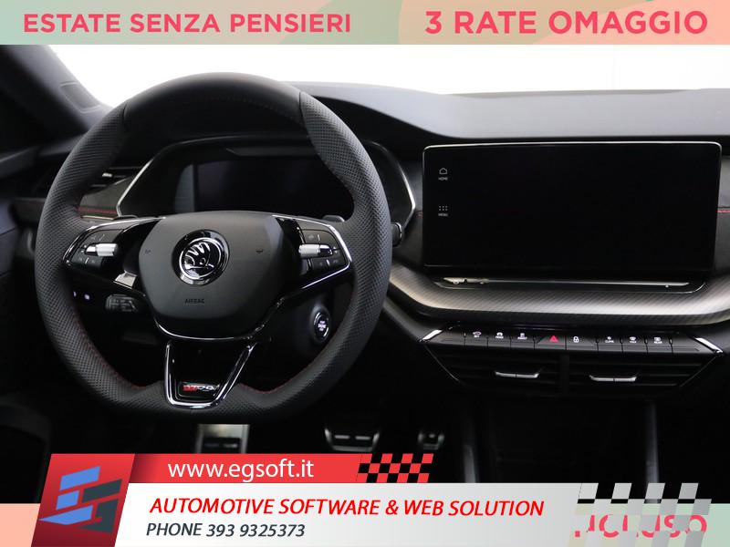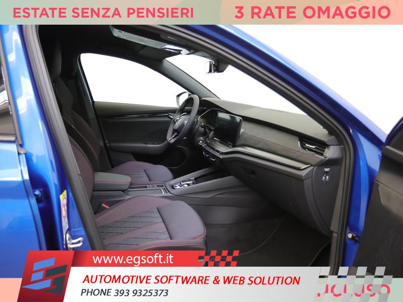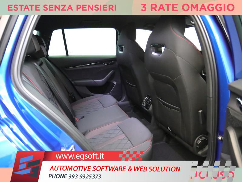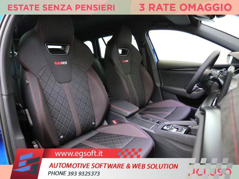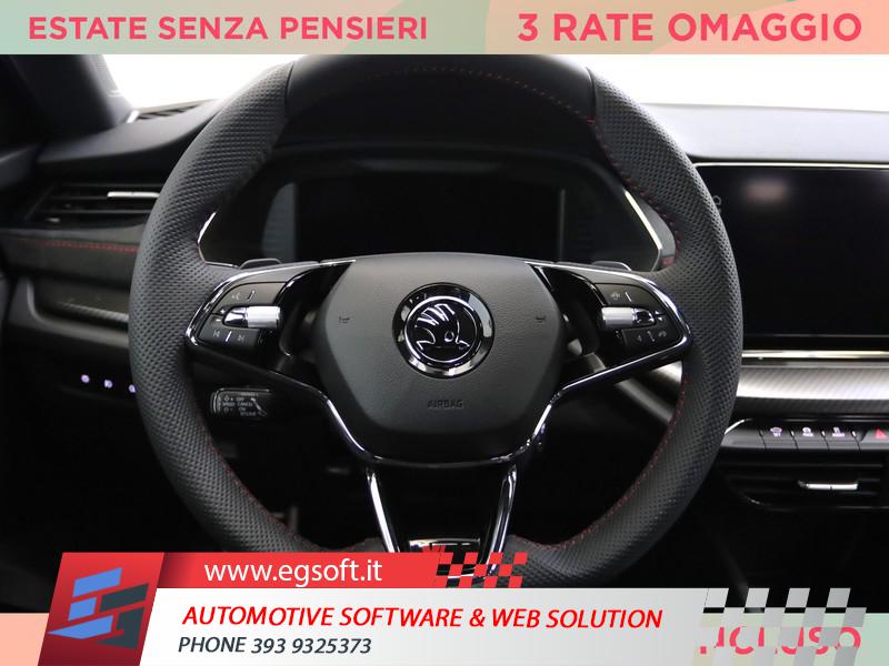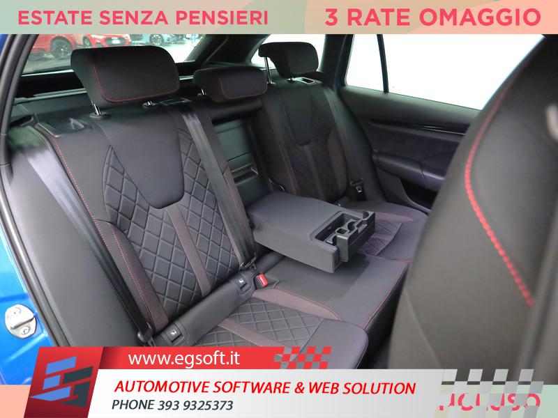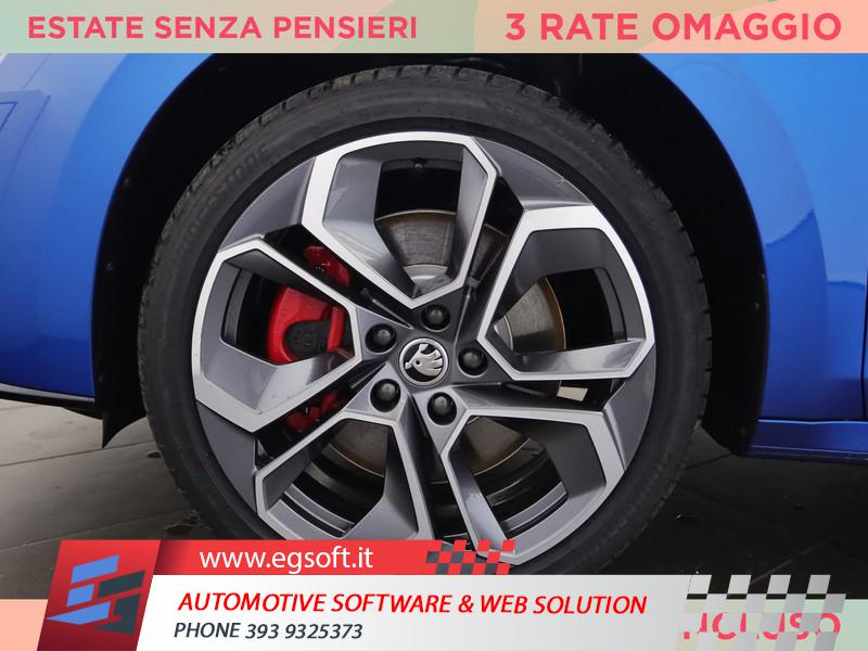 TELECAMERA POSTERIORE CON LINEE GUIDA DINAMICHE PER IL PARCHEGGIOCERCHI IN LEGA ALTAIR ANTRACITE DIAMANTATI 75J X 19"VARIANT/AVANTTELECAMERA POSTERIORESKODA CONNECT - CARE CONNECT CON CHIAMATA D'EMERGENZA SERVICE PROATTIVORETROCAMERA REAR VIEWREMOTE ACCESS 1 ANNOPNEUMATICI 225/40 R19 93Y XL SPORTIVIMOTORE CICLO OTTO 4 CIL. 2.0 L GRUPPO MOT. 06Q.BMOTORE A BENZINA A 4 CILINDRI 2 0 L/ 180EQUIPAGGIAMENTO SPORTIVOCOPERTURE PER RUOTE IN LEGA LEGGERACERCHI IN LEGA ALTAIR ANTRACITE TORNITI LUCIDI 7 5J XCERCHI IN LEGA 'ALTAIR' ANTRACITE TORNITI LUCIDI 7 5J XCAMBIO AUTOMATICO A 7 RAPPORTISISTEMA DI RICARICA WIRELESS PER SMARTPHONEVOLANTE MULTIFUNZIONE SPORTIVO IN PELLE TRAFORATA A TRE RAZZE ESTRUMENTAZIONE DIGITALE CON DISPLAYVETRI SCURIVANO PORTAOMBRELLO NELLE PORTIERE ANTERIORI CON UN OMBRELLO INTEGRATO LATOPORTABICCHIERIASSISTENTE PER IL RIMORCHIOKIT EMERGENZATERGICRISTALLITASCHE PORTAOGGETTI E PORTASMARTPHONE SUL RETRO DEGLI SCHIENALI DEI SEDILISTERZO PROGRESSIVOSPIA DI SEGNALAZIONE LUCI ACCESE PORTE APERTE E CINTURE DIRETROVISORE INTERNO ANABBAGLIANTESPECCHIETTI RETROVISORI ELETTRICI - RISCALDABILISPECCHIETTI ESTERNI DI COLORE NEROSPECCHIETTI DI CORTESIACONNESSIONE IOS - ANDROIDSISTEMA DI CHIAMATA D'EMERGENZASISTEMA DI PROTEZIONE CONTRO ERRATO RIFORNIMENTO CARBURANTEINDICATORE PRESSIONE PNEUMATICISISTEMA DI LAVAGGIO FARI CON INDICATORE DI LIVELLO DEL LIQUIDOFARI AUTOMATICI E SENSORE PIOGGIASEDILI ANTERIORI REGOLABILISEDILI POSTERIORI REGOLABILISEDILI ABBATTIBILIRIFLETTORI DI SICUREZZA SULLE PORTIERE ANTERIORISISTEMA DI FRENATA ANTI COLLISIONERASCHIETTO PER IL GHIACCIO SUL TAPPO DEL SERBATOIO DEL CARBURANTEIMPIANTO AUDIO CON TOUCHSCREENPUSH-PUSH - APERTURA ELETTRICA DELLO SPORTELLINO DEL SERBATOIO (TRAMITE CHIUSURAPRESA DA 12 V NEL VANO BAGAGLIPREDISPOSIZIONE PER SEGGIOLINO ISOFIX CON TOPTETHER SUI SEDILI POSTERIORI ESTERNIPORTABOTTIGLIE DA 15 L NEGLI ALLOGGIAMENTI PORTAOGGETTI NELLE PORTIEREPEDALIERA IN ALLUMINIOSENSORI DI PARCHEGGIO POST./ANT. CON FRENATA AUTOMATICAMKBMANCORRENTI AL TETTO DI COLORE NERO LUCIDOFARI POSTERIORI A LEDILLUMINAZIONE ABITACOLOLUCI DI CORTESIA LED PER LE ALETTE PARASOLELUCI DI BENVENUTO NELLA ZONA DI ACCESSO ALLA VETTURA CONLOGO RS SULLA GRIGLIA ANTERIORE SUL PORTELLONE POSTERIORE E SUIFARI AUTOMATICISISTEMA DI ASSISTENZA AL MANTENIMENTO DELLA CORSIALAMPEGGIAMENTO DELLE LUCI DI FRENATA DURANTE FRENATE DI EMERGENZAKIT RIPARAZIONE PNEUMATICI / TIREFITKEYLESS SYSTEMINTERRUZIONE DELL'ALIMENTAZIONE DEL CARBURANTE IN CASO DI INCIDENTEINTERNI RS IN TESSUTO CON DASHBOARD IN PELLE SINTETICA SCAMOSCIATAINSERTI DECORATIVI PLANCIA 'CARBON-LOOK'ANTIFURTO IMMOBILIZERILLUMINAZIONE VANO PIEDI ANTERIORE E POSTERIORE AMBIENT LIGHT IN TECNOLOGIAILLUMINAZIONE PLANCIA E PORTIERE ANTERIORI AMBIENT LIGHT IN TECNOLOGIA LEDILLUMINAZIONE BAGAGLIAIOASSISTENTE ALLA FRENATAELEMENTI FERMAOGGETTI NEL BAGAGLIAIOAPPENDIABITISISTEMA DI PROTEZIONE URTO PEDONIFRENO DI STAZIONAMENTO ELETTRICOFENDINEBBIAFARI ANTERIORI FULL LED CRYSTAL LIGHTING CON TECNOLOGIA MATRIX EESC / ELECTRONIC STABILITY CONTROLCONTROLLO DELLA STABILITÀBLOCCO DIFFERENZIALECONTROLLO DELLA FRENATAASSISTENTE IN DISCESASELETTORE STILE DI GUIDASISTEMA DI RICONOSCIMENTO STANCHEZZA GUIDATORECORNICE DELLA CALANDRA NERO LUCIDOPORTA USBCLIP PORTA TICKET SUL MONTANTE ACLIMATIZZATORE AUTOMATICO A DUE ZONECIELOCERCHI IN LEGA COMET 7 5J X 18" IN COLORECASSETTO PORTAOGGETTICAPPELLIERA POSTERIORE AVVOLGIBILEBRACCIOLO POSTERIORE RIBALTABILE CON PORTABICCHIERI E POSSIBILITÀ DI CREARE UN'APERTURABRACCIOLO ANTERIORESICUREZZAASSISTENTE PER PARTENZE IN SALITAASSETTO SPORTIVO RIBASSATO DI 15 MMASRAPERTURA AUTOMATICA DELLA CHIUSURA CENTRALIZZATA E ATTIVAZIONE LUCI DI EMERGENZAALZACRISTALLI ELETTRICI ANTERIORI E POSTERIORIPORTAOGGETTI AGGIUNTIVIALLOGGIAMENTO PER IL GIUBBOTTO AD ALTA VISIBILITÀ NELLE PORTIEREAIRBAG GINOCCHIAAIRBAG LATERALIAIRBAGADAPTIVE CRUISE CONTROLABSALTOPARLANTI 84 MANIGLIE RIPIEGABILI SUL TETTOCHIUSURA CENTRALIZZATA