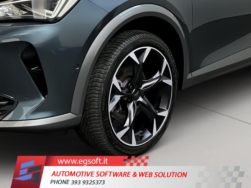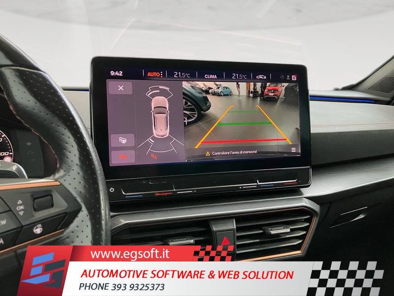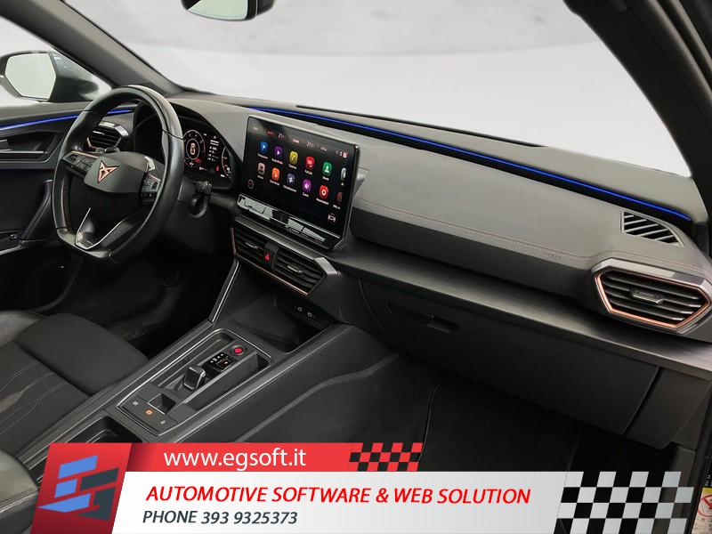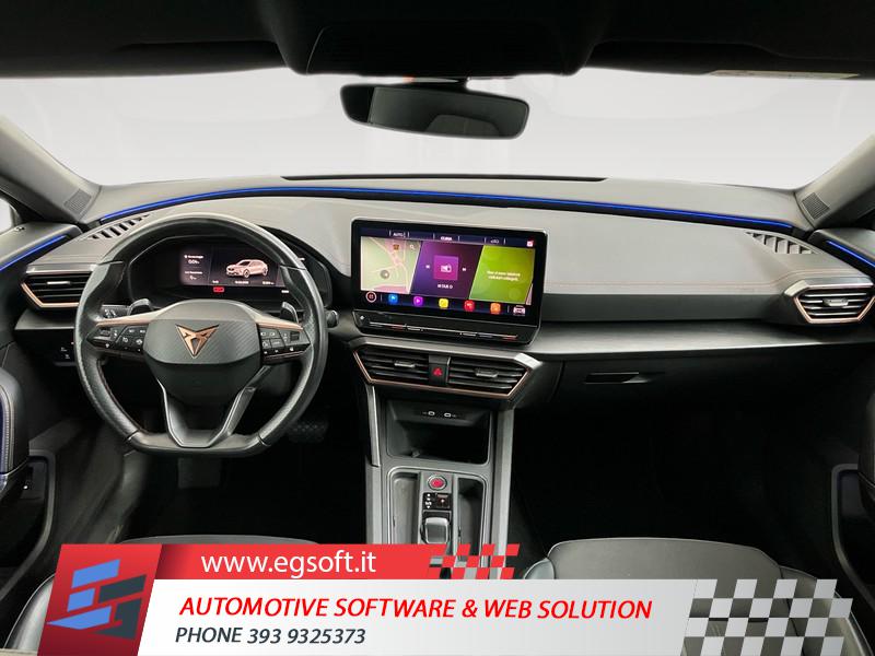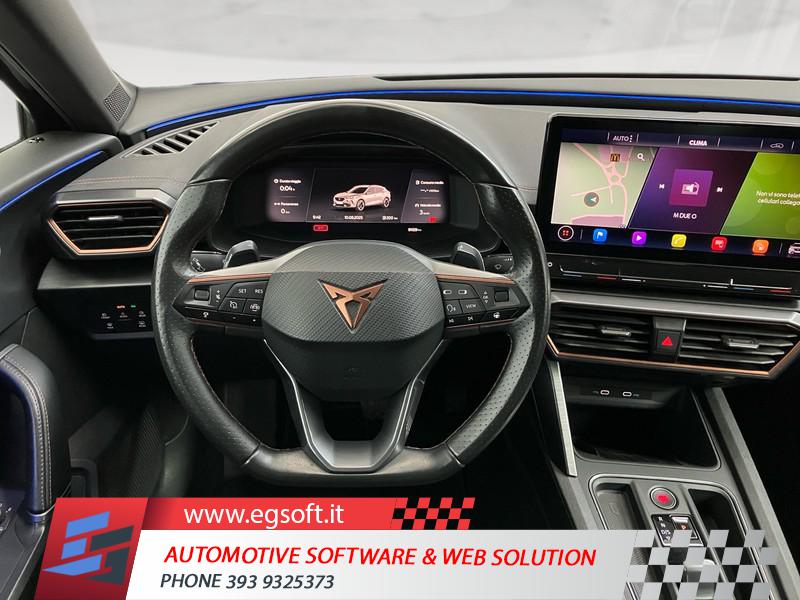 TELECAMERA POSTERIORETECHNOLOGY PACKSISTEMA DI NAVIGAZIONE VZ CON DISPLAY TOUCH DA 12"RUOTINO DI SCORTAGANCIO TRAINO ELETTRICOTELECAMERA DI RETROMARCIASISTEMA DI NAVIGAZIONE 12RUOTA DI SCORTA DA 18 COME RUOTINO DI EMERGENZAPACCHETTO SAFE E DRIVING L IN COMBINAZIONE CON SISTEMA DIMAPCARE AGGIORNAMENTO DEL MATERIALE CARTOGRAFICO DEL SISTEMA DI NAVIGAZ. PLUSESTENSIONE GARANZIA 2 ANNI/80 000 KMDISPOSITIVO DI TRAINO ELETTRICOCUPRA CONNECT GEN3 - SICUREZZA E SERVICE ACCESSO REMOTO ECUPRA CONNECT GEN3 - MEDIA E INTERNETCOFANO DEL BAGAGLIAIO CON APERTURA E CHIUSURA ELETTRICA CON PEDALECERCHI IN LEGA 19 EXCLUSIVE 38/3 MECCANIZZATI NEL COLORE NEROASSISTENTE PER IL PARCHEGGIO (SERVOSTERZO)2 ANNI OPPURE 80.000 KMPARK ASSISTSAFE E DRIVING PACK LCERCHI IN LEGA DA 19" MACHINED EXCLUSIVE 38/3" COLORE SPORTPORTELLONE BAGAGLIAIO ELETTRICOINDICATORE PRESSIONE PNEUMATICIFRENO DI STAZIONAMENTO ELETTRICOCUPRA CONNECTCIELOACCESSO REMOTOFULL LINKCERCHI IN LEGA DA 18" SILVERSAFE E DRIVING PACK MAIRBAG DISINSERIBILEMEDIA SYSTEM CON DISPLAY TOUCH CAPACITIVO DA 10"SEDILI SPORTIVI CUPRASENSORI DI PARCHEGGIO POSTERIORIAIRBAGAIRBAG A TENDINAAIRBAG LATERALISICUREZZAILLUMINAZIONE ABITACOLOBRACCIOLO ANTERIORECLIMATIZZATORE AUTOMATICO A TRE ZONESISTEMA DI RICARICA WIRELESS PER SMARTPHONESTRUMENTAZIONE DIGITALE CON DISPLAYRADIO DIGITALE DABSELETTORE STILE DI GUIDAFARI FULL LEDASSISTENTE ALLA FRENATAKEYLESS SYSTEMSISTEMA DI ASSISTENZA AL MANTENIMENTO DELLA CORSIAPERSONALIZZAZIONE COLORI ESTERNISEDILI ANTERIORI REGOLABILIPERSONALIZZAZIONI LINEA E STILEFISSAGGI ISOFIXSISTEMA DI RICONOSCIMENTO STANCHEZZA GUIDATORESISTEMA DI CHIAMATA D'EMERGENZAVOLANTE RISCALDABILECAMBIO AL VOLANTEBLOCCO DIFFERENZIALESPECCHIETTI RETROVISORI COLORATISPECCHIETTI RETROVISORI ELETTRICI - RISCALDABILIPNEUMATICIVETRI POSTERIORI OSCURATIAIRBAG FRONTALI